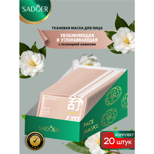 НАЙТИ ВЫГОДНЕЕ - Увлажняющая и успокаивающая маска для лица Sadoer Compact с эссенцией камелии 25 гр х 20 шт