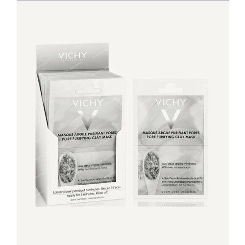 НАЙТИ ВЫГОДНЕЕ - Vichy MINERAL MASKS 2 штуки, Минеральная очищающая поры маска с глиной 2x6 мл (саше)