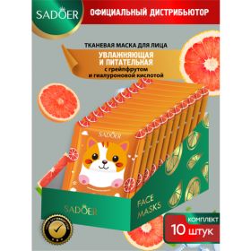 НАЙТИ ВЫГОДНЕЕ - Увлажняющая и питательная маска для лица Sadoer Cartoon с грейпфрутом и гиалуроном х 10 шт