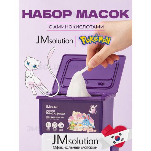 НАЙТИ ВЫГОДНЕЕ - Маска для лица с аминокислотами JMsolution Easy Care Amino Acid Mask Pokemon Summer, Корея 30 шт