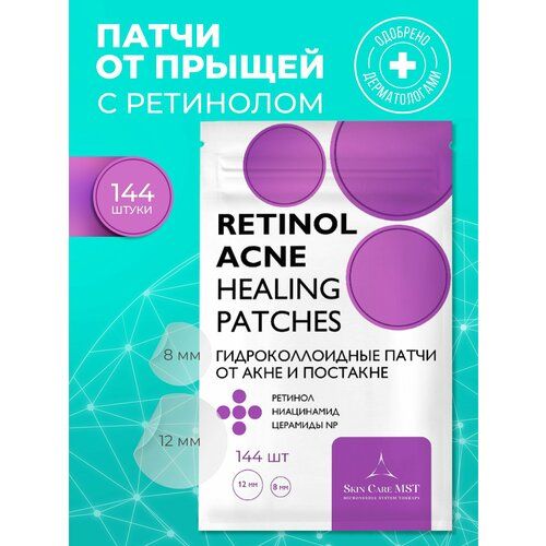 Патчи от прыщей с ретинолом, ниацинамидом и церамиды — это новое средство для ухода за кожей, которое помогает бороться с акне, воспалениями, постакне и улучшает общее состояние кожи. Ретинол (витамин А) Стимулирует обновление клеток, уменьшает воспаление, стимулирует выработку коллагена. Ниацинамид (витамин B3) - успокаивает кожу, регулирует выработку кожного сала, укрепляет кожный барьер, осветляет пятна. Церамиды помогают восстанавливать защитный барьер кожи, который может быть повреждён из-за агрессивного ухода, внешних факторов. Прозрачные и точечные, заметно ускоряют процесс заживления, устраняют несовершенства и гнойные воспаления, борются с черными точками, угрями на проблемной коже, создавая защитную среду и удаляя гной. В наборе 2 размера: 8 и 12 мм, всего 144 штуки, в блистере. Лечебные точечные мини стикеры с противовоспалительным эффектом представляют собой лейко пластырь. Это невидимое вытягивающие средство для маскировки воспаленного участка. Отлично подходят подросткам и взрослым. Наклейки от прыщей можно использовать в течение дня и на ночь, они держатся на лице и не отклеиваются. Ультратонкие антибактериальные пимпл патчи против воспалений маскируют недостатки. Инструкция по применению: наносить маленькие одноразовые pimple acne patch необходимо на сухие лицо, лоб, спину. Локальные патчи от прыщей на лице абсолютно безболезненны при использовании, в отличии от патчи от прыщей с микроиглами, иголками, иголочками или шипами. Патчи отлично подходят под макияж, вытягивают и в то же время маскируют воспаление.