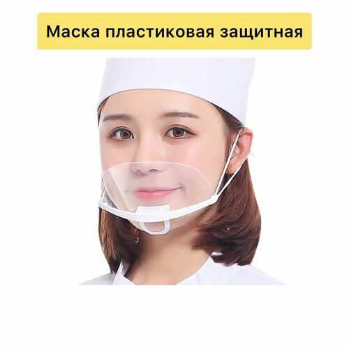 Прозрачные маски для салонов красоты и общепита (5 шт.)Универсальный размер. Прозрачная защитная маска для лица - это новый уровень защиты, сделанный из современного ПВХ-материала. Лицевой защитный экран минимизирует риски заражения болезнетворными бактериями, которые распространяются воздушно-капельным путём. Носить пластиковое изделие комфортно. Если попадание микрочастиц от кашля неизбежно - прозрачная основа эффективно защитит лицо. Дезинфекция поверхности проводится методом промывания спиртом или антисептиком. Базовые параметры конструкции рассчитаны на эффективную защиту лица от вирусной инфекции, создание комфорта при общении с собеседником. Многоразовая маска защищает от инфекций, механических частиц, брызг, пыли, прикосновения рук. Применяется в медицине, салонах красоты, на кухне ресторанов и в других производственных местах разного профиля. Визуализация окружения за счёт прозрачности экрана - безупречна.
