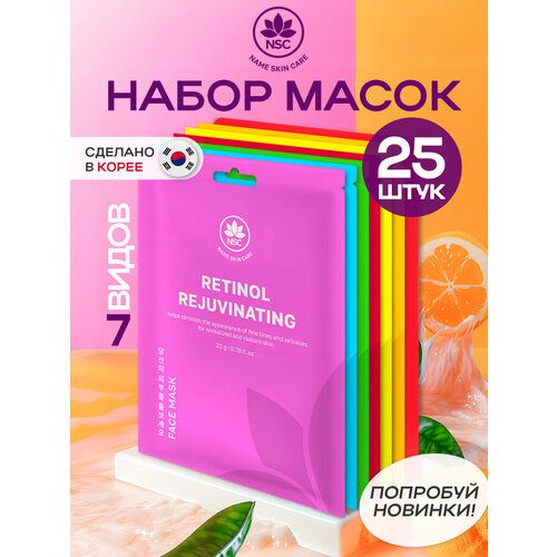 НАЙТИ ВЫГОДНЕЕ - Тканевая маска для лица Name Skin Care набор 25 штук ( 7 видов масок ), Корея