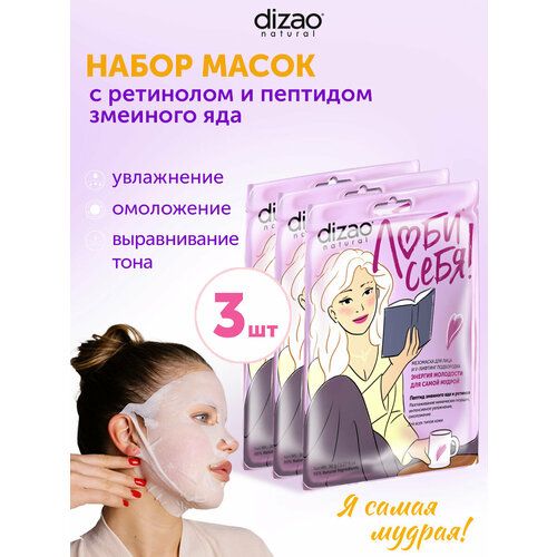 НАЙТИ ВЫГОДНЕЕ - Маска для лица, шеи и подбородка тканевая набор Dizao Пептид змеиного яда и ретинол против морщин, омоложение 3 шт