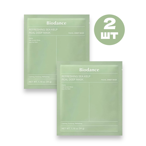 НАЙТИ ВЫГОДНЕЕ - Biodance Успокаивающая гидрогелевая маска с водорослями Refreshing Sea Kelp Real Deep Mask 2 шт.