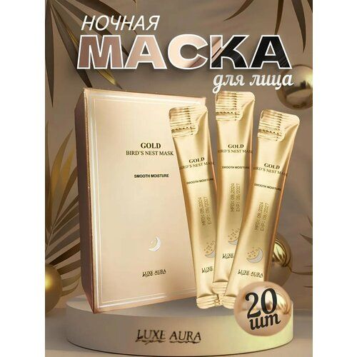НАЙТИ ВЫГОДНЕЕ - Набор ночных увлажняющих масок для лица LUXE AURA с золотом и экстрактом ласточкиного гнезда, 20 штук