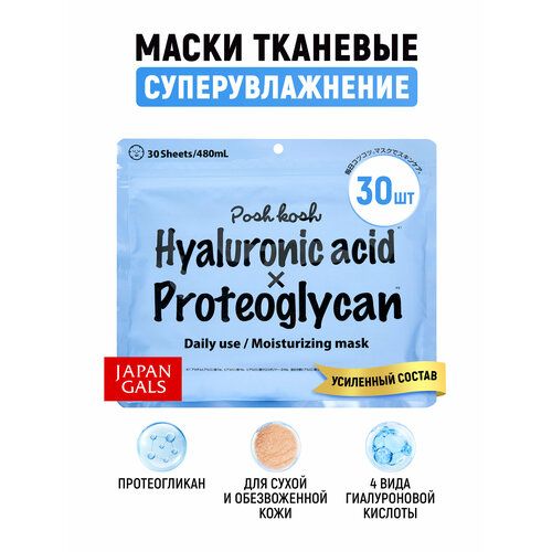 НАЙТИ ВЫГОДНЕЕ - JAPAN GALS Маски тканевые для лица Posh Kosh (30 штук) увлажняющие 4 вида гиалуроновой кислоты + протеогликан / Для сухой и обезвоженной кожи (Япония)