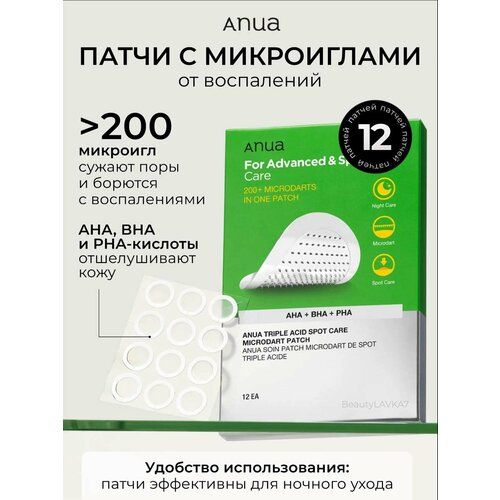 Anua Ultra-Thin Spot Cover Patch - это патчи от воспалений с микроиглами, предназначенные для точечного ухода за проблемной кожей. В упаковке вы найдете 12 штук, каждая из которых предназначена для использования на одном участке кожи.