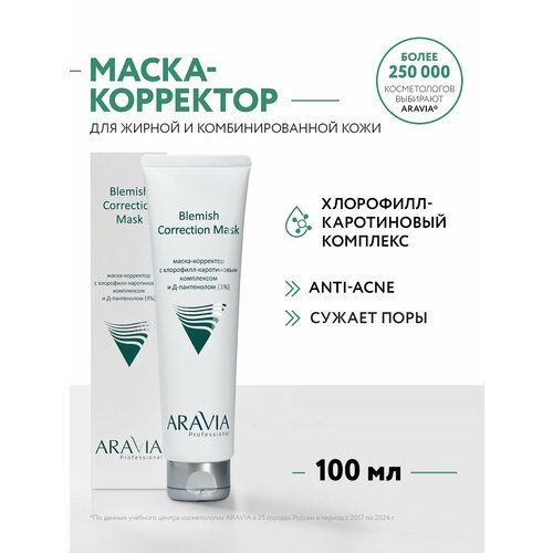 НАЙТИ ВЫГОДНЕЕ - ARAVIA Blemish Correction Mask маска-корректор против несовершенств с хлорофилл-каротиновым комплексом и Д-пантенолом, 150 г, 100 мл, 100 мл