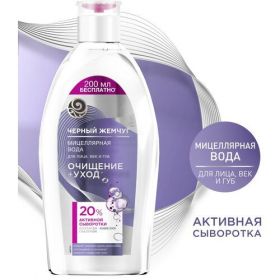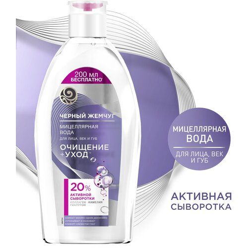 Мицеллярная вода для чувствительной кожи Черный Жемчуг Очищение +уход создана по уникальной* технологии и содержит в своей формуле 20% активной сыворотки. В состав средства также входят: