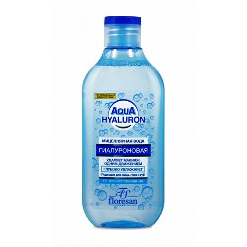 Floresan Мицеллярная вода для снятия макияжа экстракт гиалуроновая 300 мл. Уникальное средство, разработано на базе новейших открытий в области косметических средств по уходу за кожей лица. Сочетает в себе лучшие свойства молочка, смывки и тоника. Мицеллы микрочастицы мицеллярной воды - направлены на деликатный уход и бережное очищение кожи. Эффективно очищает и снимает макияж с лица, глаз и губ. Не сушит кожу, не раздражает слизистые оболочки глаз. Удаляя макияж и загрязнения, заметно улучшает состояние кожи, возвращая ощущение свежести, мягкости и комфорта.