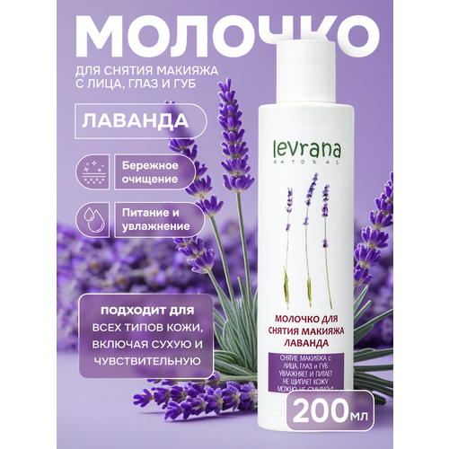 НАЙТИ ВЫГОДНЕЕ - Очищающее молочко для снятия макияжа с глаз, губ, лица Лаванда, Levrana, 200 мл