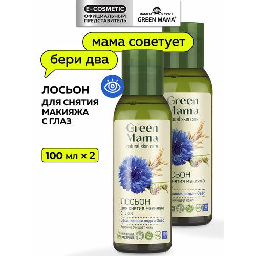 НАЙТИ ВЫГОДНЕЕ - Лосьон для снятия макияжа с глаз GREEN MAMA васильковая вода и овес 100 мл - 2 шт