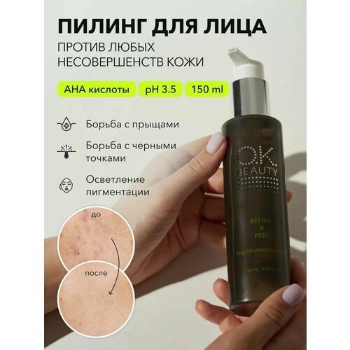 НАЙТИ ВЫГОДНЕЕ - OK BEAUTY Пилинг-лосьон для лица, кислотный, молочный, от прыщей, очищающий, для жирной кожи, для ультразвуковой чистки, 150 мл