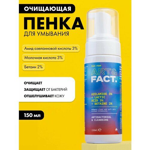 НАЙТИ ВЫГОДНЕЕ - ART&FACT. / Очищающая пенка для умывания для лица с амидом азелаиновой кислоты 3%, молочной кислотой 3% и бетаином 2%, 150 мл
