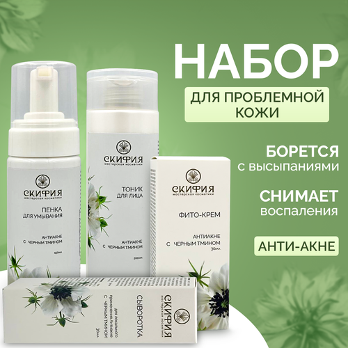НАЙТИ ВЫГОДНЕЕ - Набор пенка, тоник, сыворотка и фито-Крем для проблемной кожи с акне Скифия