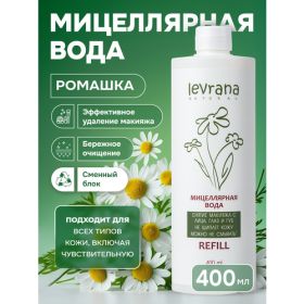 НАЙТИ ВЫГОДНЕЕ - Мицеллярная вода для снятия макияжа с лица, глаз и губ очищающая Ромашка, Levrana, рефил 400 мл