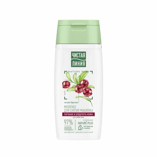 Молочко для снятия макияжа Чистая Линия для любой кожи 100 мл. Эксперты бренда Чистая Линия разработали молочко для снятия макияжа, которое подходит для всех типов кожи, и действует сразу в нескольких направлениях: деликатно снимает макияж, препятствует потере упругости, увлажняет и питает кожу. В составе продукта 97% компонентов натурального происхождения. Экстракт вербены восстанавливает баланс увлажненности и тонизирует. Экстракт пиона и льняное масло успокаивают и смягчают. Масло миндаля содержит жирные кислоты, витамины Е и F, питает и выравнивает поверхность кожи. Ферментированное оливковое масло питает и защищает от преждевременного старения. Экстракт брусники препятствует потере упругости кожи.