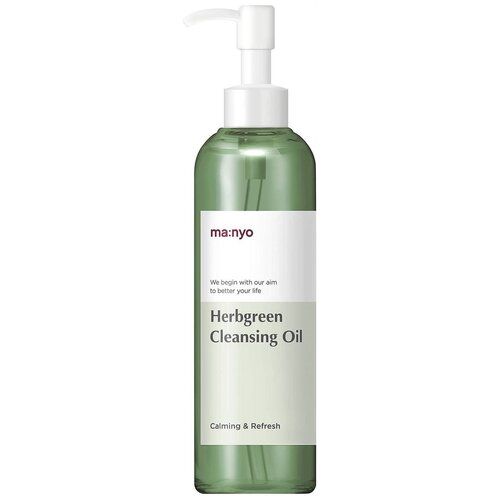 Manyo Herbgreen Cleansing Oil Гидрофильное масло для лица на основе комплекса трав Гидрофильное масло на основе комплекса трав мягко очищает эпидермис от любых видов загрязнений, растворяет жировые пробки и даже самую стойкую косметику. Масло эффективно как для обладательниц сухой кожи, не вызывает раздражений, чувства сухости и стянутости, так и для кожи склонной к жирности, удаляет излишки кожного сала и нормализует работу сальных желез. Особый травяной комплекс в составе продукта обладает ярко выраженным бактерицидным и успокаивающим свойством, способствует заживлению воспалений, снимает зуд и красноту.