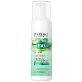 EVELINE Bio ORGANIC Мицеллярная очищающая пенка для умывания 150мл. Мицеллярная очищающая пенка для умывания BIO ORGANIC бережно и эффективно очищает кожу лица от загрязнений и себума, интенсивно увлажняет и питает, препятствуя появлению прыщей и угревой сыпи. Регулярное использование нормализует работу сальных желез, не нарушая водный баланс кожи. Пенка не оставляет ощущения пленки Глубоко очищает и освежает Успокаивает раздражения Разглаживает и регенерирует активные компоненты: BioАлоэ Вера эффективно смягчает кожу и моментально успокаивает раздражения, глубоко увлажняя эпидермис. BioЦинк способствует устранению несовершенств кожи, сокращает покраснения, регулирует выделение себума. Зеленый чай обладает мощным противовоспалительным действием, восстанавливает кожу.