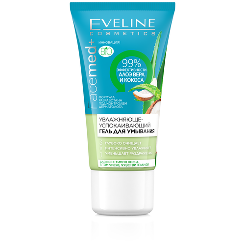 НАЙТИ ВЫГОДНЕЕ - Eveline Cosmetics Facemed+ увлажняюще-успокаивающий гель для умывания 3в1 с алое вера и кокосом, 30 мл