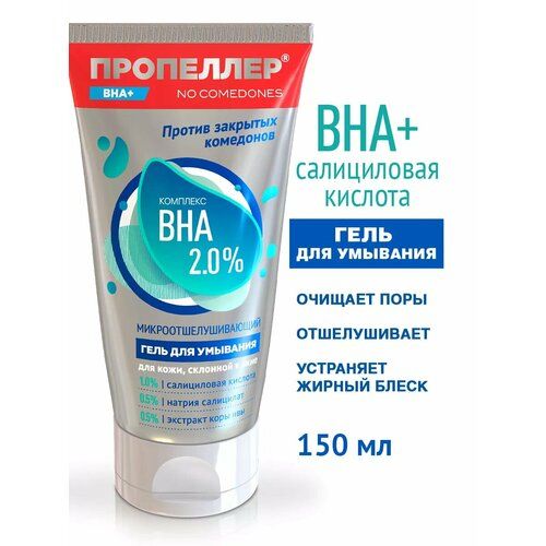 НАЙТИ ВЫГОДНЕЕ - Пропеллер Микроотшелушивающий гель для умывания комплекс ВНА 2,0% для кожи, склонной к акне, 150 мл