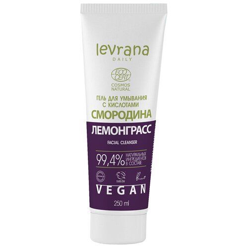НАЙТИ ВЫГОДНЕЕ - Levrana Гель для умывания с кислотами Смородина и лемонграсс, 250 мл