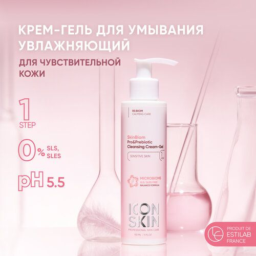 НАЙТИ ВЫГОДНЕЕ - Крем-гель для умывания увлажняющий для чувствительной кожи с пребиотиками и пробиотиками ICON SKIN RE: BIOM, 150мл