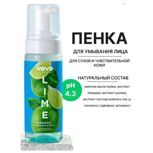 НАЙТИ ВЫГОДНЕЕ - VEVE Пенка для умывания с эфирным маслом Lime для сухой и чувствительного кожи, бережное очищение и питание 160 мл.
