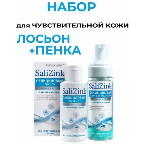 НАЙТИ ВЫГОДНЕЕ - Набор SaliZink с цинком и серой для чувствительной кожи Пенка для умывания + Салициловый лосьон