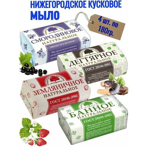 Мыло туалетное Нижегородское 180гр. набор 4 штуки - это набор из четырех кусковых туалетных мыл с различными ароматами и свойствами.