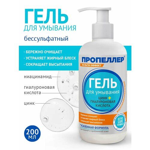 НАЙТИ ВЫГОДНЕЕ - Пропеллер Гель для умывания цинк + гиалуроновая кислота, 200 мл