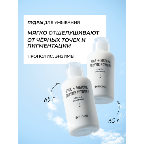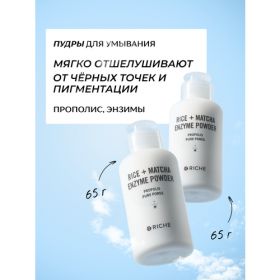 НАЙТИ ВЫГОДНЕЕ - Мягкая энзимная пудра для умывания 2 шт RICHE Прополис + Матча. Деликатный пилинг для лица, от черных точек. Пилинг для кожи головы Рише