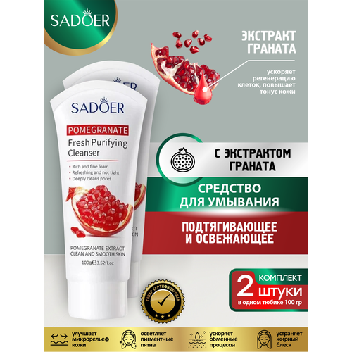 НАЙТИ ВЫГОДНЕЕ - Подтягивающее и освежающее средство для умывания Sadoer с экстрактом граната 100 гр. х2 шт.