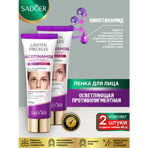 НАЙТИ ВЫГОДНЕЕ - Осветляющее противопигментное средство для умывания Sadoer 80 гр. х 2 шт.