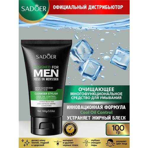 НАЙТИ ВЫГОДНЕЕ - Мужское многоцелевое очищающее средство для умывания Sadoer Cool Oil Control 100 гр.