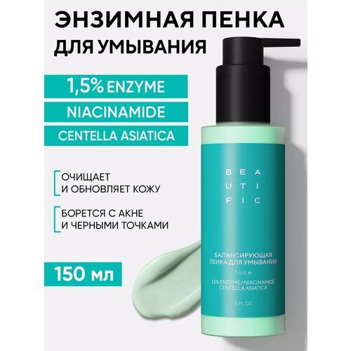 НАЙТИ ВЫГОДНЕЕ - BEAUTIFIC Энзимная пенка для умывания ACNE AWAY, очищающее средство от акне, прыщей, воспалений, черных точек, для сужения пор, 150 мл