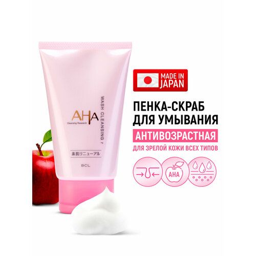 НАЙТИ ВЫГОДНЕЕ - AHA Renew Пенка-скраб для умывания лица антивозрастная, увлажняющая с фруктовыми кислотами / Для зрелой кожи / С гиалуроновой кислотой и керамидами (Япония) - 120 г