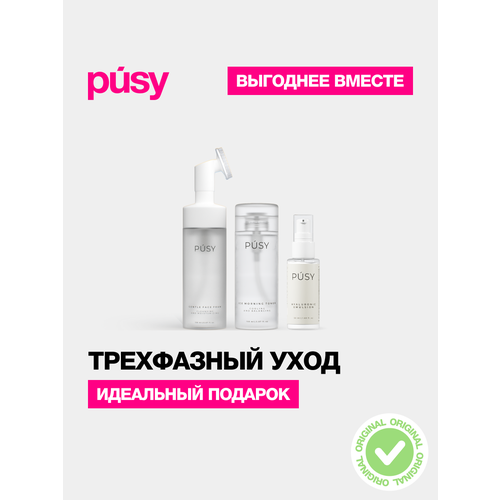 НАЙТИ ВЫГОДНЕЕ - PUSY Набор трехфазный уход: пенка, тоник и гиалуроновая эмульсия