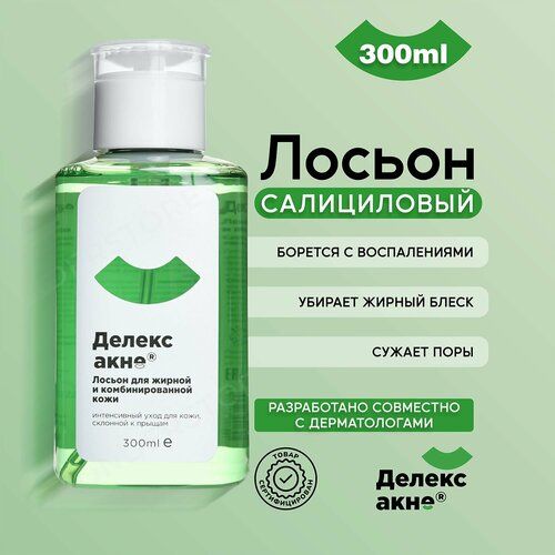 НАЙТИ ВЫГОДНЕЕ - Салициловый лосьон для проблемной кожи лица Делекс Акне , от прыщей, угрей и воспалений, 300 мл