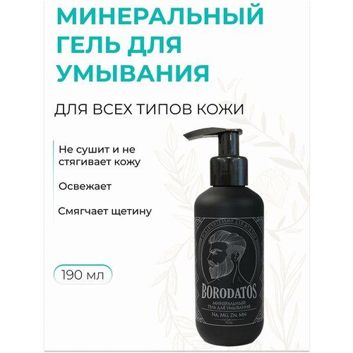 BORODATOS Минеральный гель для умывания парфюмированный с минералами, освежает и смягчает щетину, 190 мл