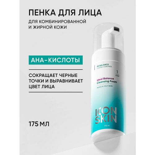 НАЙТИ ВЫГОДНЕЕ - Пенка для умывания очищающая с AHA-кислотами для жирной и комбинированной кожи ICON SKIN RE: BALANCE 175 мл