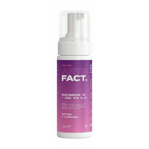 НАЙТИ ВЫГОДНЕЕ - ART&FACT. Пенка для умывания лица матирующая с ниацинамидом 4% и цинком 0,3%, 150 мл