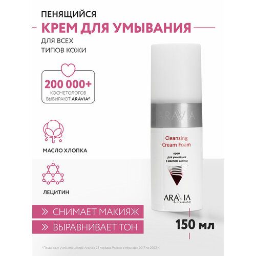 НАЙТИ ВЫГОДНЕЕ - ARAVIA крем для умывания с маслом хлопка Aravia Professional Cleansing Cream Foam, 150 мл, 185 г