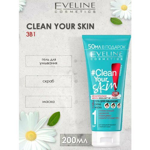 3В1 Гель для умывания + скраб + маска 200мл для комбинированной и жирной кожи. Средство идеально очищает и ухаживает за проблемной кожей, склонной к появлению несовершенств. Уникальное мультифункциональное средство эффективно регулирует выработку кожного жира, устраняет блеск и очищает поры. Одновременно успокаивает и глубоко увлажняет кожу. Не сушит, не стягивает и не раздражает ее. Глубоко очищает. Деликатно отшелушивает. Матирует и сужает поры.