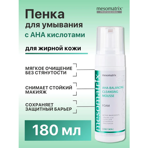 НАЙТИ ВЫГОДНЕЕ - Пенка для умывания лица для жирной кожи мицелярная, от акне и воспалений, для снятия макияжа и очищения кожи лица AHA-BALANCING 180 мл Mesomatrix Professional (Аюна)
