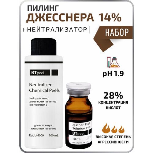 Выгодный набор из Пилинг Джесснера 14% BTpeel, 10 мл и Нейтрализатор химических пилингов BTpeel, 100 мл.