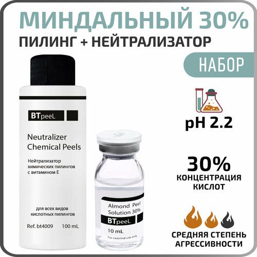 Выгодный набор из Миндальный пилинг Almond Peel Solution 30% и Нейтрализатор химических пилингов BTpeel, 100 мл.
