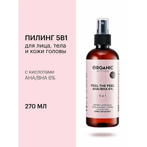 НАЙТИ ВЫГОДНЕЕ - Organic Kitchen Блогеры Крис печатает 5в1 Пилинг для лица, тела и кожи головы 6% с молочной, гликолевой AHA и салициловой BHA кислотами 270 мл