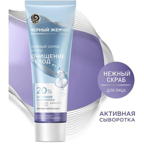 НАЙТИ ВЫГОДНЕЕ - Черный Жемчуг нежный скраб для лица Очищение+уход с гиалуроном, глубоко очищает и устраняет жирный блеск 80 мл
